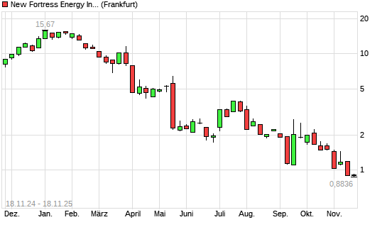 Mit dem Rücksetzer auf 0,88 EUR hat die New Fortress Energy-Aktie (ISIN US6443931000) am 17.11.2025 ein neues All-Time-Low erreicht und damit den Kurs vom 14.11.2025 eingestellt.Die New ...weiterlesen