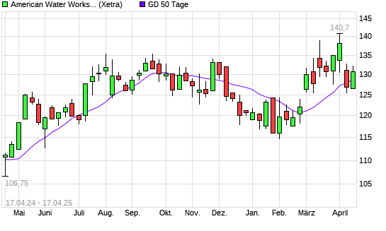 Mit dem Rücksetzer auf 127,95 EUR hat die American Water Works-Aktie am 16.04.2025 die 50-Tage-Linie nach unten gekreuzt.Die American Water Works-Aktie befindet sich seit dem 10.04.2025 ...weiterlesen