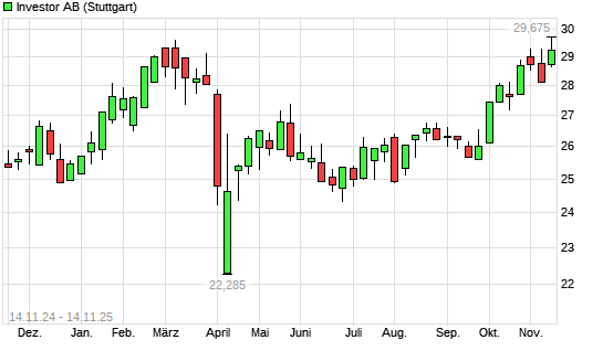 Mit dem Anstieg auf 29,48 EUR hat die Investor B-Aktie (ISIN SE0015811963) am 13.11.2025 ein neues All-Time-High erreicht und damit den Kurs vom 03.11.2025 eingestellt.Die Investor B-Aktie befindet ...weiterlesen