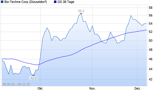 Mit dem Rücksetzer auf 53,00 EUR hat die Bio-Techne-Aktie am 05.12.2025 die 38-Tage-Linie nach unten gekreuzt.Die Bio-Techne-Aktie befindet sich seit dem 13.10.2025 im langfristigen Aufwärtstrend ...weiterlesen
