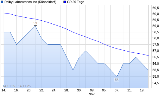 Mit dem Anstieg auf 57,50 EUR hat die Dolby-Aktie am 13.11.2025 die 20-Tage-Linie nach oben gekreuzt.Die Dolby-Aktie befindet sich seit dem 03.04.2025 im langfristigen Abwärtstrend und hat in ...weiterlesen
