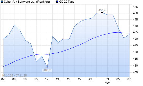Mit dem Rücksetzer auf 430,50 EUR hat die CyberArk Software-Aktie am 06.11.2025 die 20-Tage-Linie nach unten gekreuzt.Die CyberArk Software-Aktie befindet sich seit dem 28.07.2025 im langfristigen ...weiterlesen