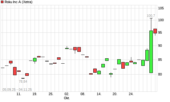 Mit dem Anstieg auf 94,01 EUR hat die Roku-Aktie (ISIN US77543R1023) am 03.11.2025 ein neues 6-Monats-Hoch erreicht und damit den Kurs vom 31.10.2025 eingestellt.Die Roku-Aktie befindet sich ...weiterlesen