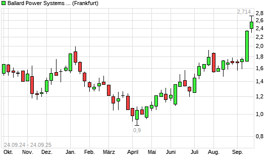 Mit dem Anstieg auf 2,48 EUR hat die Ballard Power-Aktie (ISIN CA0585861085) am 23.09.2025 ein neues 12-Monats-Hoch erreicht und damit den Kurs vom 22.09.2025 eingestellt.Die Ballard Power-Aktie ...weiterlesen