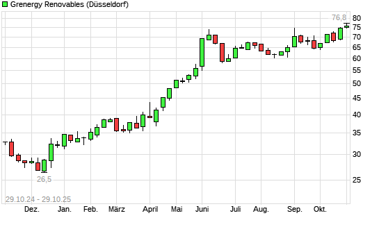 Mit dem Anstieg auf 76,70 EUR hat die Grenergy Renovables-Aktie (ISIN ES0105079000) am 28.10.2025 ein neues All-Time-High erreicht und damit den Kurs vom 27.10.2025 eingestellt.Die Grenergy ...weiterlesen