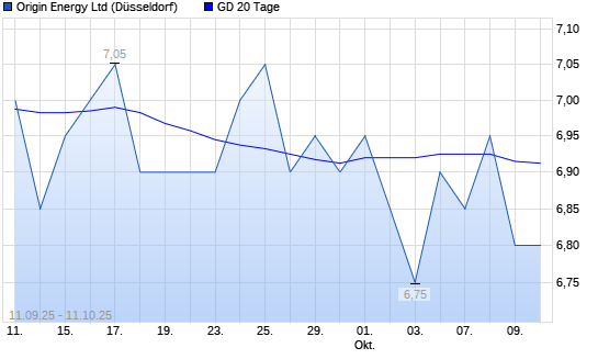 Mit dem Anstieg auf 7,00 EUR hat die Origin Energy-Aktie am 10.10.2025 die 20-Tage-Linie nach oben gekreuzt.Die Origin Energy-Aktie befindet sich seit dem 07.07.2025 im langfristigen Aufwärtstrend ...weiterlesen