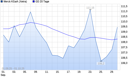 Mit dem Anstieg auf 109,00 EUR hat die Merck-Aktie am 30.09.2025 die 20-Tage-Linie nach oben gekreuzt.Die Merck-Aktie befindet sich seit dem 24.10.2024 im langfristigen Abwärtstrend und hat ...weiterlesen
