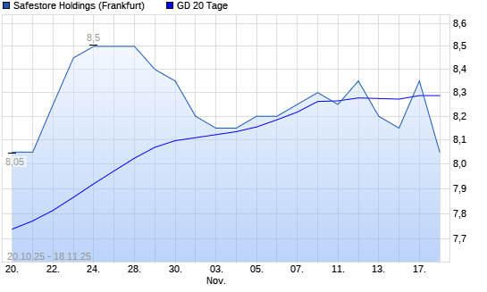 Mit dem Anstieg auf 8,35 EUR hat die Safestore Holdings-Aktie am 17.11.2025 die 20-Tage-Linie nach oben gekreuzt.Die Safestore Holdings-Aktie befindet sich seit dem 14.10.2025 im langfristigen ...weiterlesen