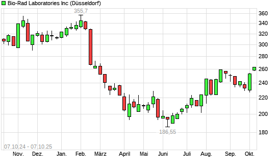 Mit dem Anstieg auf 263,00 EUR hat die Bio-Rad Laboratories-Aktie (ISIN US0905722072) am 06.10.2025 ein neues 6-Monats-Hoch erreicht und damit den Kurs vom 25.08.2025 eingestellt.Die Bio-Rad ...weiterlesen