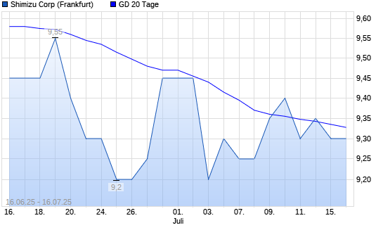 Mit dem Rücksetzer auf 9,30 EUR hat die Shimizu-Aktie am 15.07.2025 die 20-Tage-Linie nach unten gekreuzt.Die Shimizu-Aktie befindet sich seit dem 22.08.2024 im langfristigen Aufwärtstrend ...weiterlesen