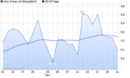 Mit dem Rücksetzer auf 8,24 EUR hat die DRAX GROUP-Aktie am 20.11.2025 die 20-Tage-Linie nach unten gekreuzt.Die DRAX GROUP-Aktie befindet sich seit dem 08.09.2025 im langfristigen Aufwärtstrend ...weiterlesen