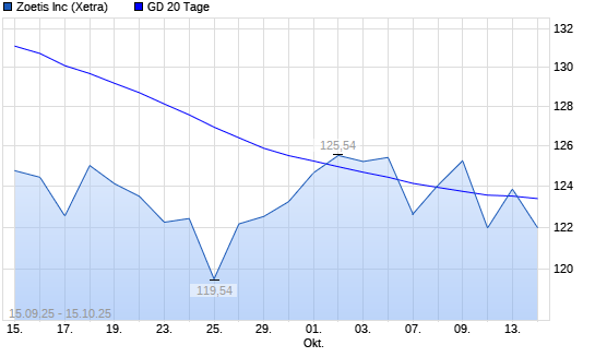 Mit dem Rücksetzer auf 122,02 EUR hat die Zoetis-Aktie am 14.10.2025 die 20-Tage-Linie nach unten gekreuzt.Die Zoetis-Aktie befindet sich seit dem 13.02.2025 im langfristigen Abwärtstrend ...weiterlesen