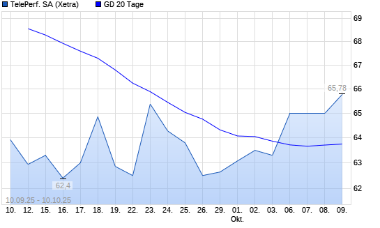 Mit dem Rücksetzer auf 63,60 EUR hat die Teleperformance-Aktie am 09.10.2025 die 20-Tage-Linie nach unten gekreuzt.Die Teleperformance-Aktie befindet sich seit dem 13.06.2025 im langfristigen ...weiterlesen