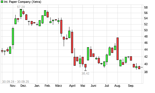 Mit dem Rücksetzer auf 38,28 EUR hat die International Paper-Aktie (ISIN US4601461035) am 29.09.2025 ein neues 12-Monats-Tief erreicht und damit den Kurs vom 16.09.2025 eingestellt.Die ...weiterlesen