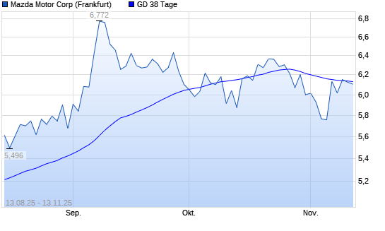 Mit dem Rücksetzer auf 6,12 EUR hat die Mazda Motor-Aktie am 12.11.2025 die 38-Tage-Linie nach unten gekreuzt.Die Mazda Motor-Aktie befindet sich seit dem 01.09.2025 im langfristigen Aufwärtstrend ...weiterlesen