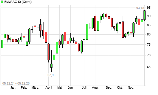 Mit dem Anstieg auf 93,22 EUR hat die BMW St-Aktie (ISIN DE0005190003) am 04.12.2025 ein neues 12-Monats-Hoch erreicht und damit den Kurs vom 25.08.2025 eingestellt.Die BMW St-Aktie befindet ...weiterlesen
