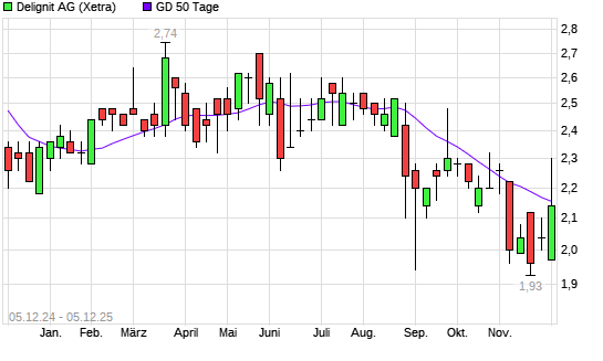 Mit dem Rücksetzer auf 2,06 EUR hat die Delignit-Aktie am 04.12.2025 die 50-Tage-Linie nach unten gekreuzt.Die Delignit-Aktie befindet sich seit dem 26.08.2025 im langfristigen Abwärtstrend ...weiterlesen