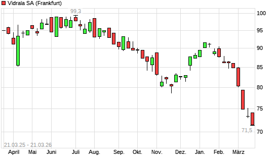 Mit dem Rücksetzer auf 71,50 EUR hat die VIDRALA SA INH.-Aktie (ISIN ES0183746314) am 20.03.2026 ein neues 12-Monats-Tief erreicht und damit den Kurs vom 19.03.2026 ...weiterlesen