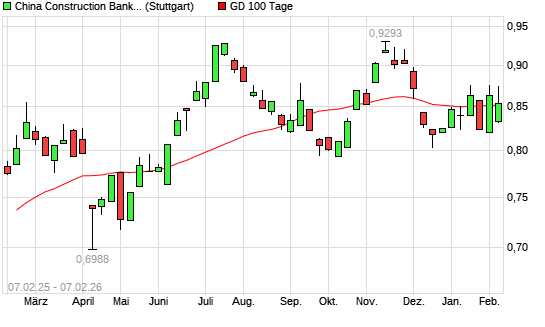 Mit dem Anstieg auf 0,87 EUR hat die China Construction Bank-Aktie am 06.02.2026 die 100-Tage-Linie nach oben gekreuzt.Die China Construction Bank-Aktie befindet sich seit dem ...weiterlesen