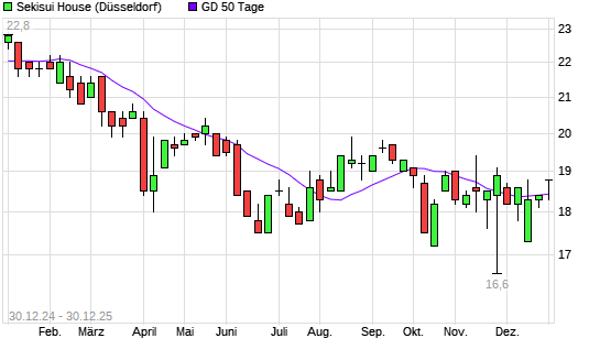 Mit dem Anstieg auf 18,80 EUR hat die Sekisui House-Aktie am 29.12.2025 die 50-Tage-Linie nach oben gekreuzt.Die Sekisui House-Aktie befindet sich seit dem 27.11.2025 im langfristigen Abwärtstrend ...weiterlesen