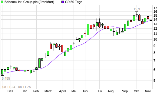 Mit dem Rücksetzer auf 13,80 EUR hat die Babcock International Group-Aktie am 07.11.2025 die 50-Tage-Linie nach unten gekreuzt.Die Babcock International Group-Aktie befindet sich seit dem ...weiterlesen
