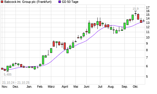 Mit dem Anstieg auf 13,80 EUR hat die Babcock International Group-Aktie am 20.10.2025 die 50-Tage-Linie nach oben gekreuzt.Die Babcock International Group-Aktie befindet sich seit dem 27.01.2025 ...weiterlesen
