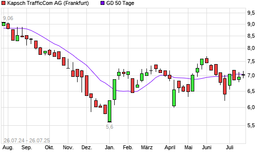Mit dem Rücksetzer auf 7,02 EUR hat die Kapsch TrafficCom-Aktie am 25.07.2025 die 50-Tage-Linie nach unten gekreuzt.Die Kapsch TrafficCom-Aktie befindet sich seit dem 17.07.2025 im langfristigen ...weiterlesen
