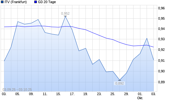 Mit dem Anstieg auf 0,93 EUR hat die ITV-Aktie am 02.10.2025 die 20-Tage-Linie nach oben gekreuzt.Die ITV-Aktie befindet sich seit dem 01.10.2025 im langfristigen Aufwärtstrend und hat in diesem ...weiterlesen