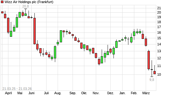 Mit dem Rücksetzer auf 10,07 EUR hat die Wizz Air Holdings-Aktie (ISIN JE00BN574F90) am 20.03.2026 ein neues All-Time-Low erreicht und damit den Kurs vom 19.03.2026 ...weiterlesen