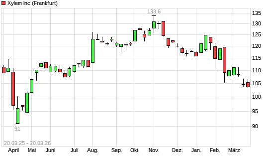 Mit dem Rücksetzer auf 103,50 EUR hat die Xylem-Aktie (ISIN US98419M1009) am 19.03.2026 ein neues 6-Monats-Tief erreicht und damit den Kurs vom 16.03.2026 eingestellt.Die ...weiterlesen