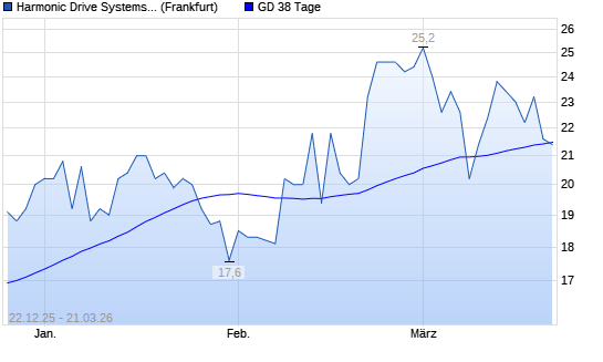 Mit dem Rücksetzer auf 21,40 EUR hat die HARMONIC DRIVE-Aktie am 20.03.2026 die 38-Tage-Linie nach unten gekreuzt.Die HARMONIC DRIVE-Aktie befindet sich seit dem 04.12.2025 ...weiterlesen