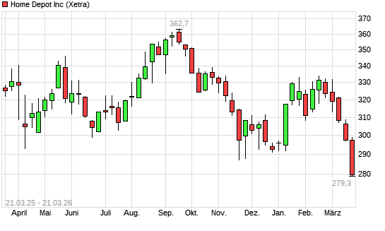 Mit dem Rücksetzer auf 274,85 EUR hat die Home Depot-Aktie (ISIN US4370761029) am 20.03.2026 ein neues 12-Monats-Tief erreicht und damit den Kurs vom 19.11.2025 eingestellt.Die ...weiterlesen