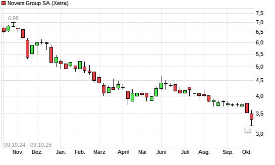 Mit dem Rücksetzer auf 3,40 EUR hat die Novem Group-Aktie (ISIN LU2356314745) am 08.10.2025 ein neues All-Time-Low erreicht und damit den Kurs vom 07.10.2025 eingestellt.Die Novem Group-Aktie ...weiterlesen