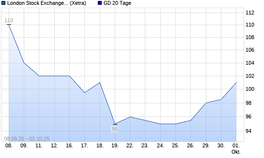 Mit dem Anstieg auf 101,00 EUR hat die LSE Group-Aktie am 01.10.2025 die 20-Tage-Linie nach oben gekreuzt.Die LSE Group-Aktie befindet sich seit dem 10.06.2025 im langfristigen Abwärtstrend ...weiterlesen