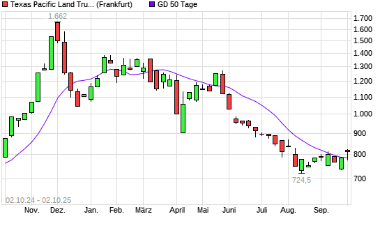 Mit dem Anstieg auf 797,50 EUR hat die Texas Pacific Land-Aktie am 01.10.2025 die 50-Tage-Linie nach oben gekreuzt.Die Texas Pacific Land-Aktie befindet sich seit dem 23.05.2025 im langfristigen ...weiterlesen
