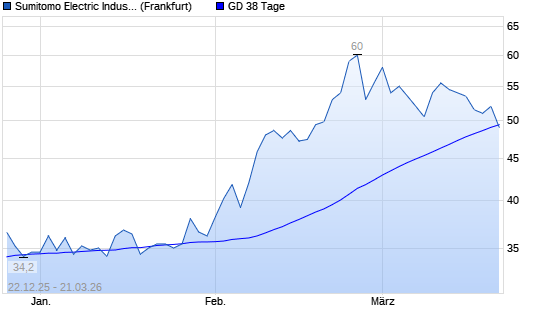 Mit dem Rücksetzer auf 49,00 EUR hat die Sumitomo Electric Industries-Aktie am 20.03.2026 die 38-Tage-Linie nach unten gekreuzt.Die Sumitomo Electric Industries-Aktie befindet ...weiterlesen