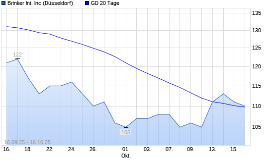 Mit dem Anstieg auf 113,00 EUR hat die Brinker International-Aktie am 15.10.2025 die 20-Tage-Linie nach oben gekreuzt.Die Brinker International-Aktie befindet sich seit dem 28.08.2025 im langfristigen ...weiterlesen