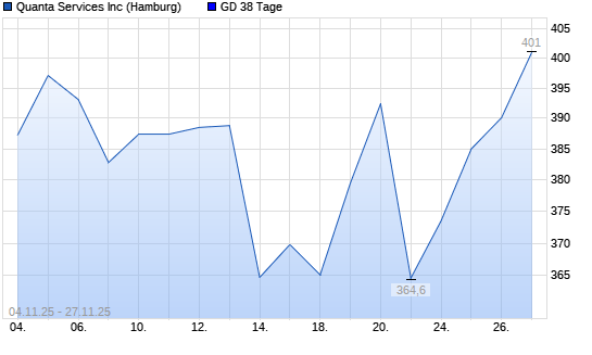 Mit dem Anstieg auf 386,60 EUR hat die Quanta Services-Aktie am 26.11.2025 die 38-Tage-Linie nach oben gekreuzt.Die Quanta Services-Aktie befindet sich seit dem 02.05.2025 im langfristigen Aufwärtstrend ...weiterlesen