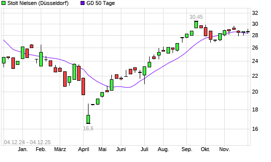 Mit dem Rücksetzer auf 28,25 EUR hat die Stolt-Nielsen-Aktie am 03.12.2025 die 50-Tage-Linie nach unten gekreuzt.Die Stolt-Nielsen-Aktie befindet sich seit dem 07.07.2025 im langfristigen ...weiterlesen