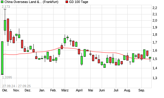 Mit dem Anstieg auf 1,52 EUR hat die China Overseas Land & Investment-Aktie am 26.09.2025 die 100-Tage-Linie nach oben gekreuzt.Die China Overseas Land & Investment-Aktie befindet sich seit ...weiterlesen