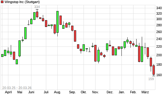 Mit dem Rücksetzer auf 166,00 EUR hat die Wingstop-Aktie (ISIN US9741551033) am 19.03.2026 ein neues 12-Monats-Tief erreicht und damit den Kurs vom 13.03.2026 ...weiterlesen