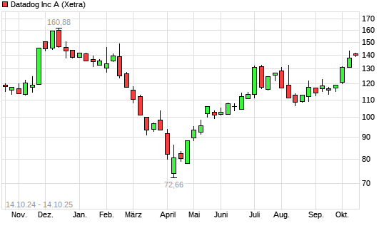 Mit dem Anstieg auf 142,24 EUR hat die Datadog-Aktie (ISIN US23804L1035) am 13.10.2025 ein neues 6-Monats-Hoch erreicht und damit den Kurs vom 10.10.2025 eingestellt.Die Datadog-Aktie befindet ...weiterlesen