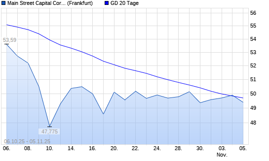 Mit dem Anstieg auf 49,90 EUR hat die Main Street Capital Corporation Common Stock-Aktie am 04.11.2025 die 20-Tage-Linie nach oben gekreuzt.Die Main Street Capital Corporation Common Stock-Aktie ...weiterlesen