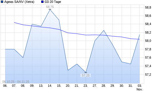 Mit dem Anstieg auf 57,80 EUR hat die Ageas-Aktie am 03.11.2025 die 20-Tage-Linie nach oben gekreuzt.Die Ageas-Aktie befindet sich seit dem 08.08.2024 im langfristigen Aufwärtstrend und hat ...weiterlesen