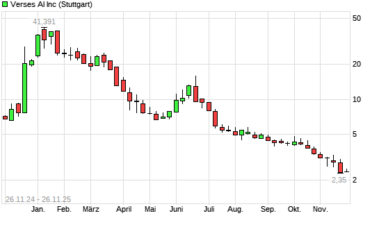 Mit dem Rücksetzer auf 2,24 EUR hat die VERSES TECHNOLOGIES CL.B-Aktie (ISIN CA92539Q6040) am 25.11.2025 ein neues All-Time-Low erreicht und damit den Kurs vom 21.11.2025 eingestellt.Der Abstand ...weiterlesen