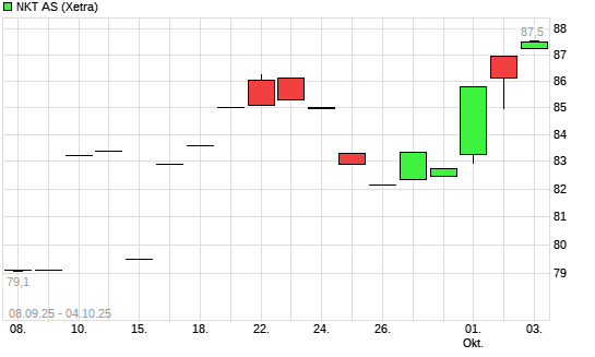 Mit dem Anstieg auf 85,15 EUR hat die NKT Holding-Aktie (ISIN DK0010287663) am 03.10.2025 ein neues 6-Monats-Hoch erreicht und damit den Kurs vom 18.09.2025 eingestellt.Die NKT Holding-Aktie ...weiterlesen
