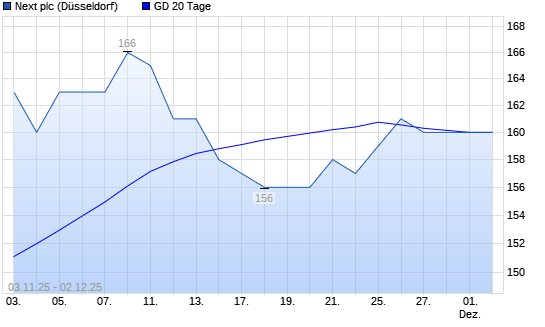 Mit dem Rücksetzer auf 160,00 EUR hat die Next-Aktie am 01.12.2025 die 20-Tage-Linie nach unten gekreuzt.Die Next-Aktie befindet sich seit dem 22.09.2025 im langfristigen Aufwärtstrend ...weiterlesen