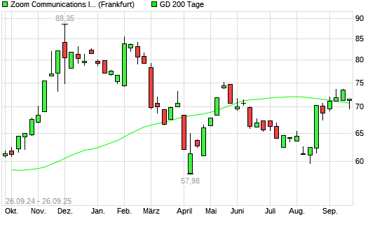Mit dem Rücksetzer auf 70,41 EUR hat die Zoom Video Communications-Aktie am 25.09.2025 die 200-Tage-Linie nach unten gekreuzt.Die Zoom Video Communications-Aktie befand sich seit dem 24.09.2025 ...weiterlesen