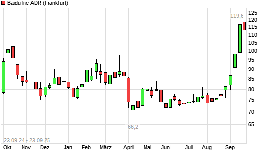 Mit dem Anstieg auf 117,00 EUR hat die Baidu-Aktie (ISIN US0567521085) am 22.09.2025 ein neues 12-Monats-Hoch erreicht und damit den Kurs vom 19.09.2025 eingestellt.Die Baidu-Aktie befindet ...weiterlesen