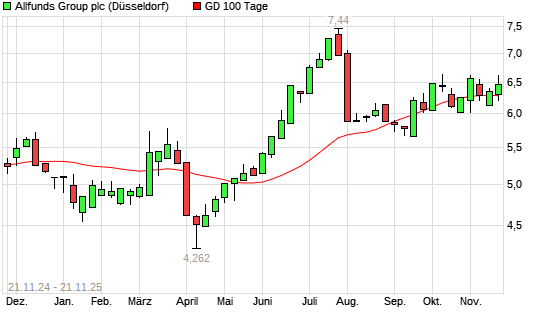 Mit dem Anstieg auf 6,34 EUR hat die ALLFUNDS GROUP-Aktie am 20.11.2025 die 100-Tage-Linie nach oben gekreuzt.Die ALLFUNDS GROUP-Aktie befindet sich seit dem 23.05.2025 im langfristigen Aufwärtstrend ...weiterlesen